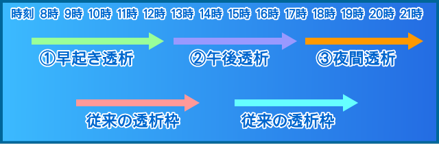 通常の午前透析➡通常の午後透析・夜間透析